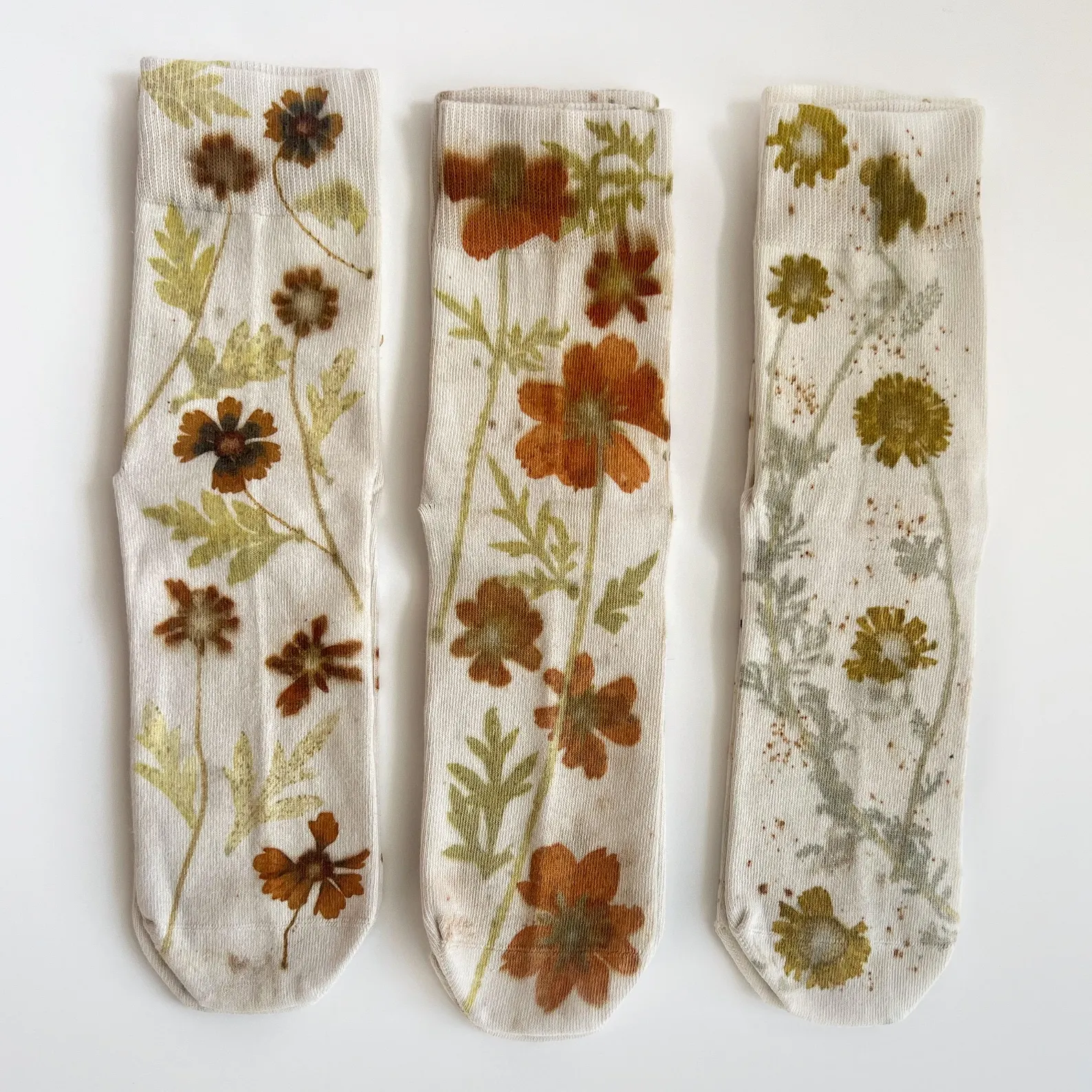 Flower Socks | Botanically dyed socks Adult S | eco print | natural dyes | leaves and flowers | unique gift